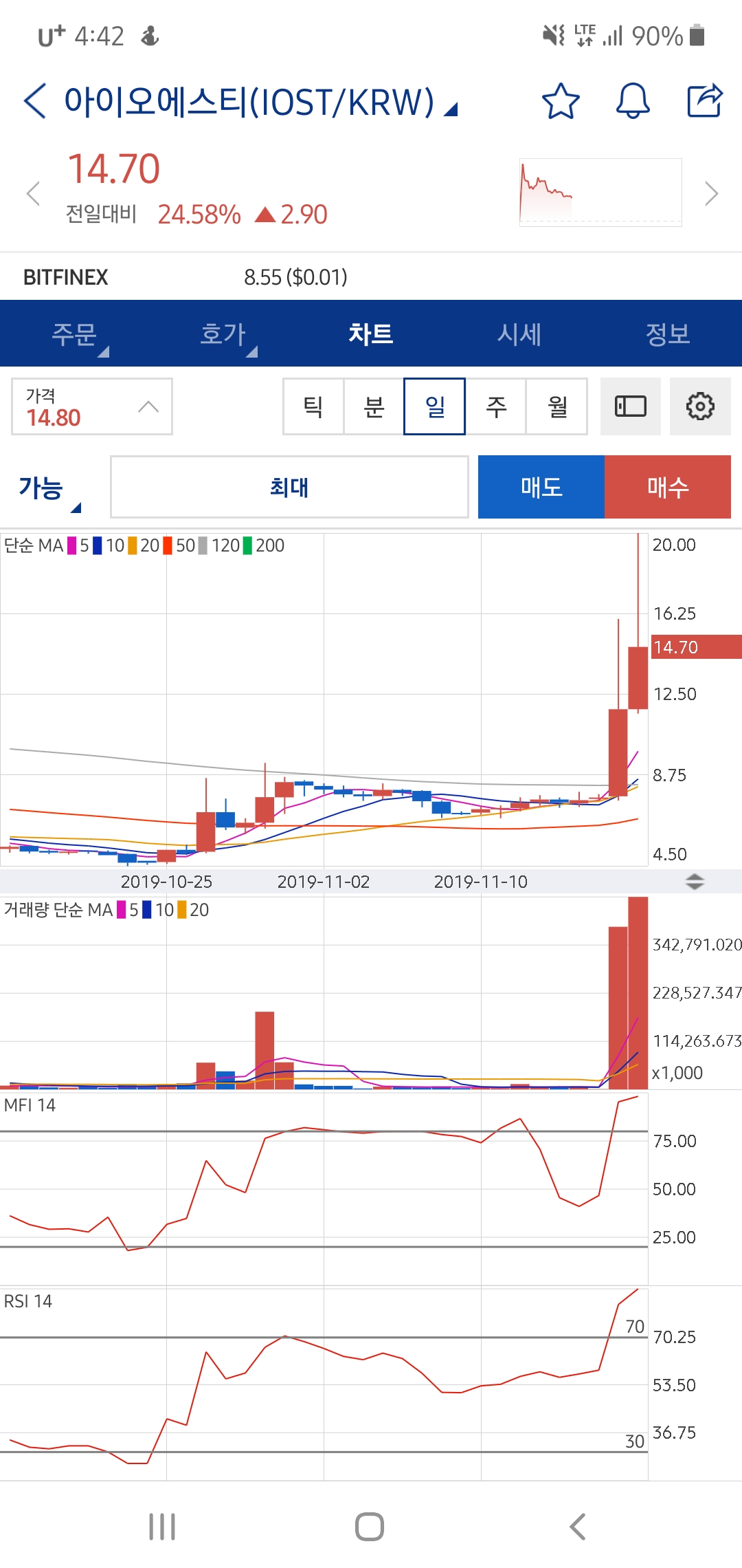 어제부터 코인을 하는 분들이라면 한번쯤은 보셨을 iost의 슈퍼상승.