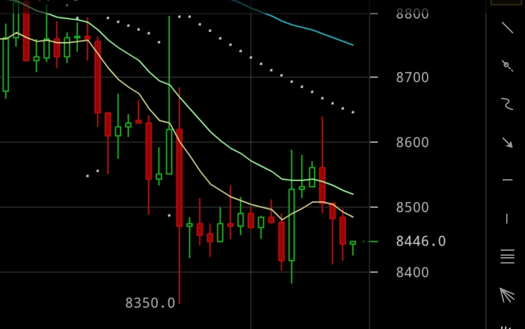 비트코인이 금일 새벽 5시경 8630까지 상승을 하고 현재 조정으로 8400을 지지하는 모습을 보여주고 있습니다.