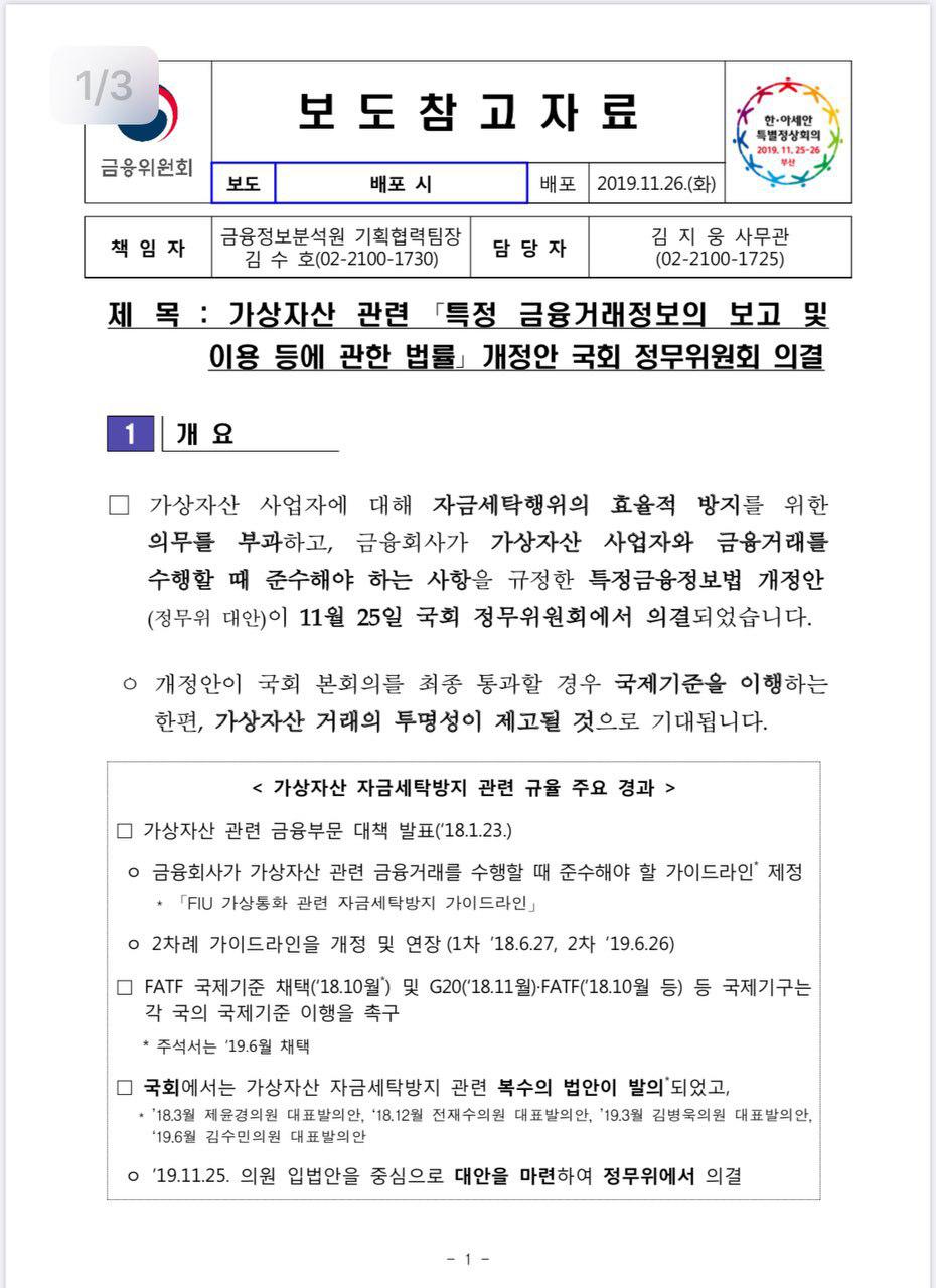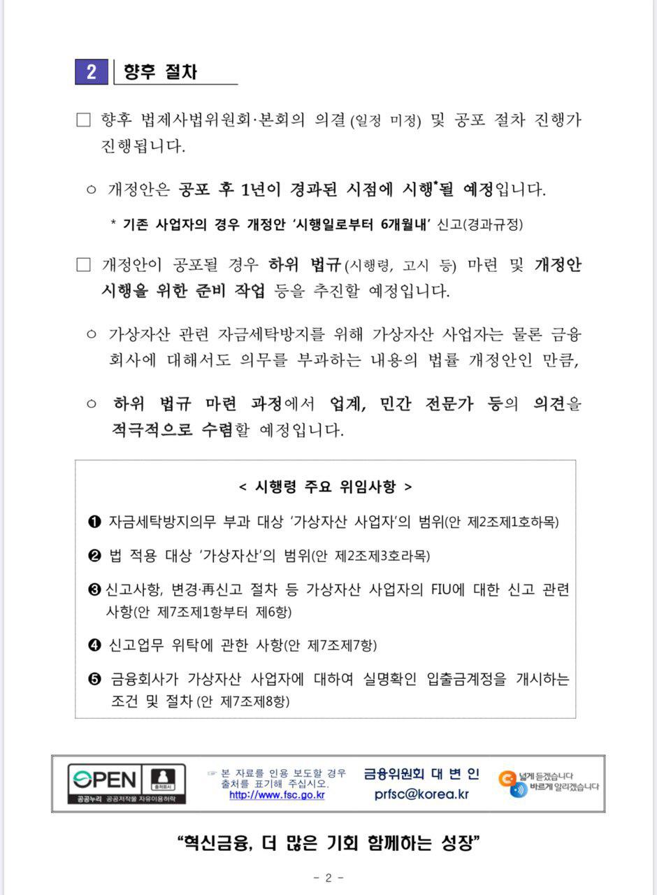 2. 긍정적인 소식은 국내에 가상자산 관련 특금법 발의되었습니다.