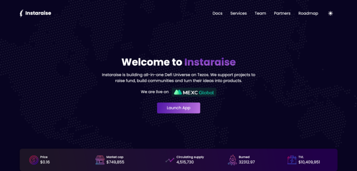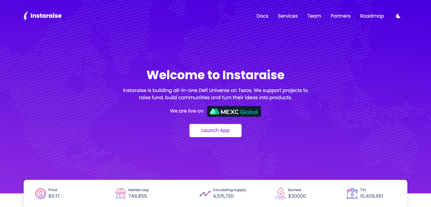 테조스 생태계를 위한 DeFi 유니버스를 만들며 Instaraise는 새로운 세계에 발을 들이고 있습니다. 생태계 최고의 프로젝트를 합류시키기 위한 굴뚝이 되는 것이 우리의 비전이며, 프로젝트들에 적합한 커뮤니티를 만들어 줄 것입니다. 또, 최고급 DeFi 툴셋을 제공해 더 많은 사용자와 제품을 위한 견인력을 가져옵니다.