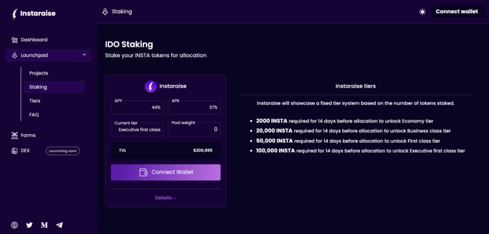 더 많은 커뮤니티 보상이 Instaraise에 가치를 더해줍니다. 유니크한 능력으로 무장한 강력한 DEX가 더 뛰어난 유연성을 제공하고, 보다 적절한 유틸리티와 트랙션을 $INSTA에 제공합니다.