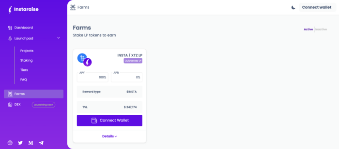 우리는 스테이커들에게 보상으로 200,000 INSTA를 제공하는 독자적인 INSTA-XTZ Quipu LP 팜을 출시합니다.