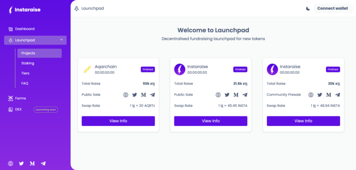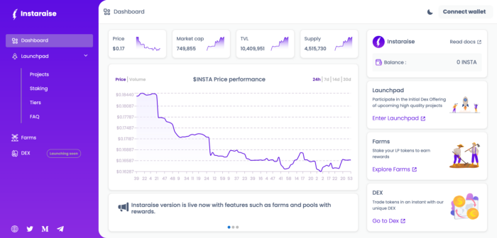 업리프트된 브랜드 정체성을 쇼케이스하고 우리가 지향하는 Instaraise와 DeFi 유니버스의 미래를 반영하기 위해서입니다. 완전히 새로워진 UI와 개선된 사용자 경험을 제시합니다: