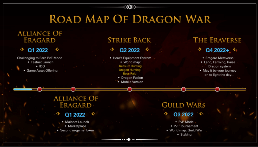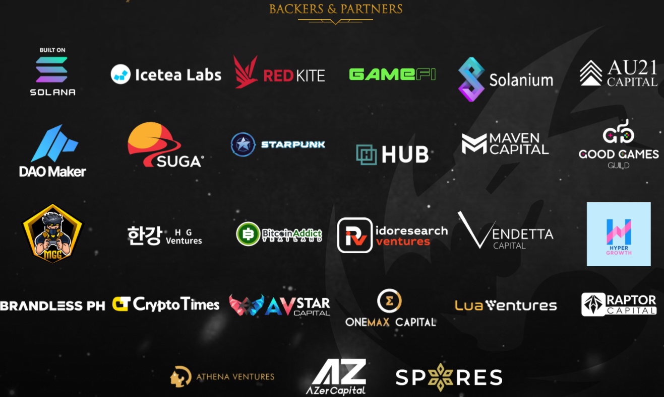 Dragon War는 Redkite, GameFi, Solanium 등 솔라나 위 선도적인 Gamefi 런치패드와 전략적 파트너셉을 체결했으며, Icetea Labs, DAOMaker 등의 유명 VC와 GGG, MGG 등의 게이밍 길드, 그리고 여러 투자자 및 배커들의 지원을 받고 있습니다.