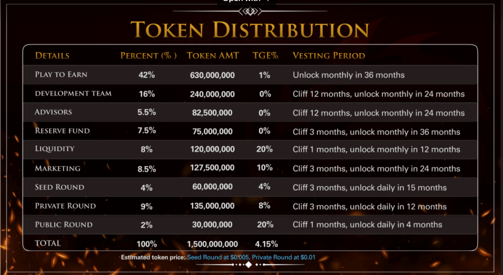 ● 분배: 베스팅 - TGE 20%, 1개월 클리프, 4개월 동안 선형적 분배