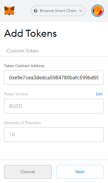 다음으로, 지갑에 BUSD 토큰을 추가해야 합니다.