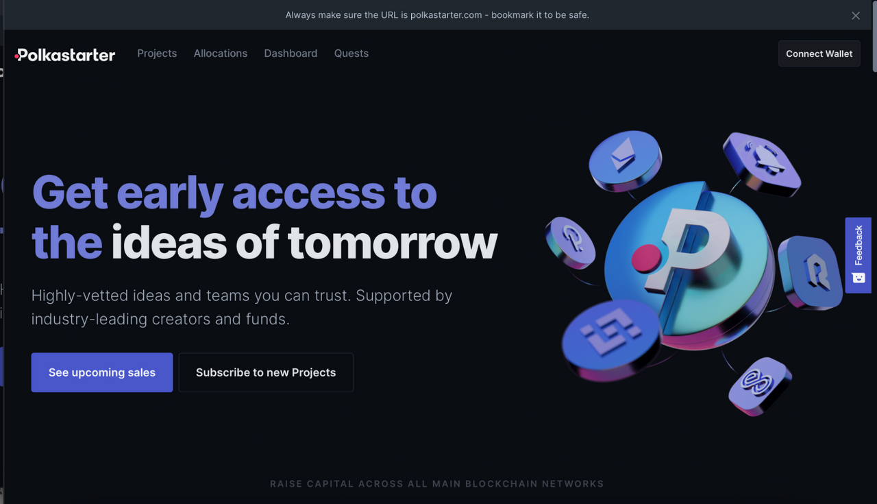 폴카스타터의 도움으로 암호화 프로젝트는 더 멀리 닿을 수 있으며 커뮤니티를 키우고 업계를 선도하는 전문가로부터 지원을 받을 수 있습니다. IDO 참가자들은 안전하고 규정을 준수하는 환경에서 최고의 프로젝트에 투자를 할 수 있는 기회를 받게 됩니다. 이더리움 뿐만이 아닌 바이낸스 스마트 체인과 폴리곤에서의 IDO에도 참여할 수 있습니다.