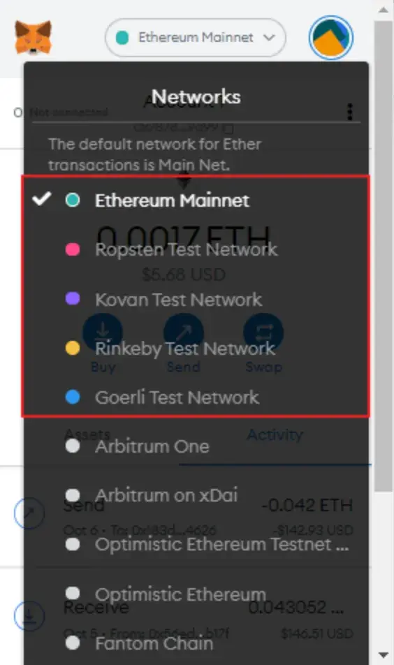메인넷과 테스트넷의 네트워크 식별자(ID)도 다릅니다