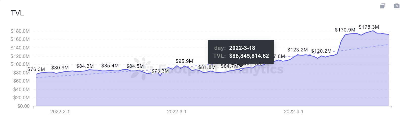 - 알고랜드의 TVL은 3월 대비 60% 증가해 179m까지 올랐었고, 지금은 조금 내려갔습니다.