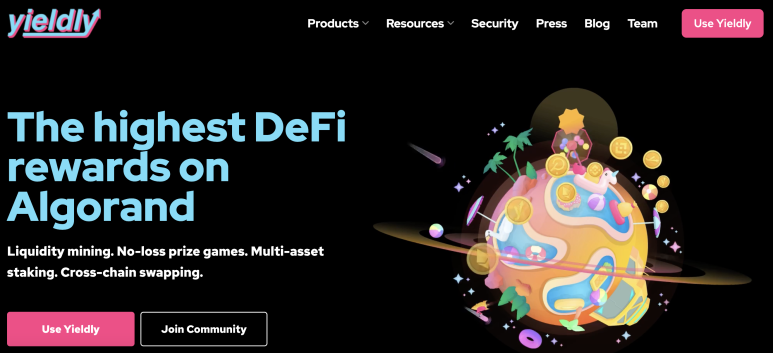 Yieldly는 알고랜드 생태계의 DeFi 프로젝트로 Borderless Capital, Longhash Ventures, Block Dream Fund