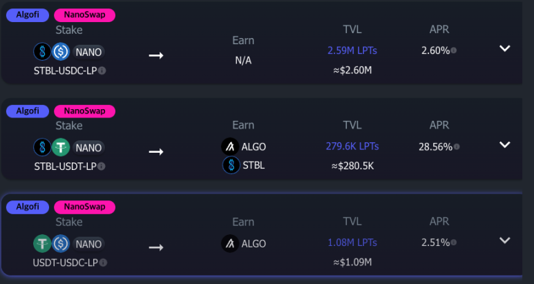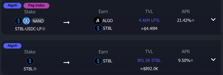 AlgoFi의 토큰은 거버넌스 토큰(BANK)과 스테이블코인(STBL)으로 이루어져 있으며,
