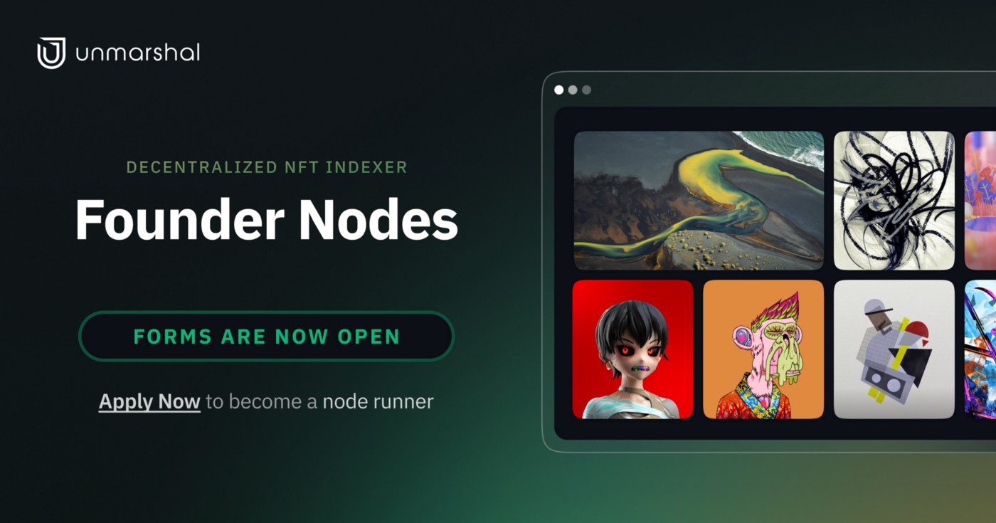 Unmarshal Founder 노드는 당사의 장기적 클라이언트 10곳으로 데이터를 제공하는 이더리움, BNB 스마트 체인, 폴리곤을 위한 Unmarshal의 오리지널 NFT 노드의 클론입니다. 파일럿 프로그램에는 이러한 노드가 오직 25개만 있을 예정이며, 호스팅하고 기여에 대해 보상을 받도록 선정된 이들에게 제공될 것입니다.