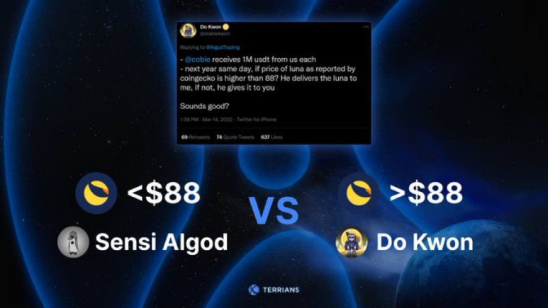 여담이지만 테라 창업자 도권이 한 투자자와 내년 3월 루나가 88$ 이상, 이하에 각각 100만 달러를 건 내기는, 투자자의 승리로 돌아갈 것 같습니다.