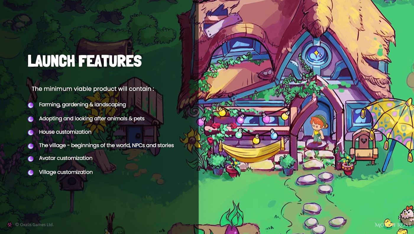 Moonfrost는 @OxalisGames의 작품으로, 이 팀은 전 세계에 걸친 게임 개발자들로 이루어졌으며, 이들 모두 Epic, Ubisoft, GameLoft, Natural Motion, Sumo 등 빅네임 스튜디오에서 근무한 경력을 갖고 있습니다. 또, 세계적인 투자기업인 Animoca Brands, Pantera, Blocore 등의 투자를 받으며, 현재 시장을 강타한 GameFi 프로젝트인 Axie Infinity 등의 대항마로 떠오를 것으로 보입니다.