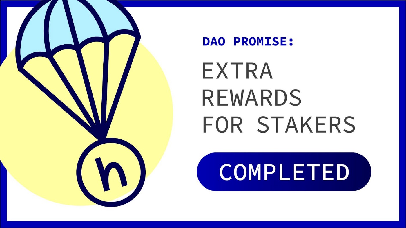 이 제안서는 DAI 일부를 시장에서 HOPR를 구입하는데 사용하고, HOPR 스테이킹 프로그램의 첫 시즌에 획득한 총 보상의 비율대로 이를 스테이커들에게 분배하는 것이었습니다. 이 토큰들은 3개월 동안 락업되는 약정을 갖고 있었습니다.