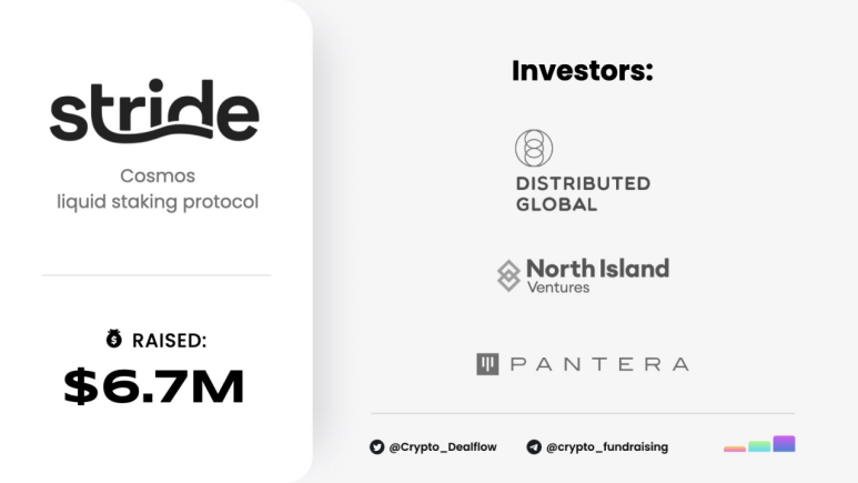 โStride์ ์๋ ํ๋ฉ ๋ผ์ด๋์๋ North Island VC, Distributed Global, Pantera Capital, 1Confirmation, Cerulean Ventures, Node V, Imperator, Cosmostation, Everstake ๋ฑ์ด ์ฐธ์ฌํ์ต๋๋ค.