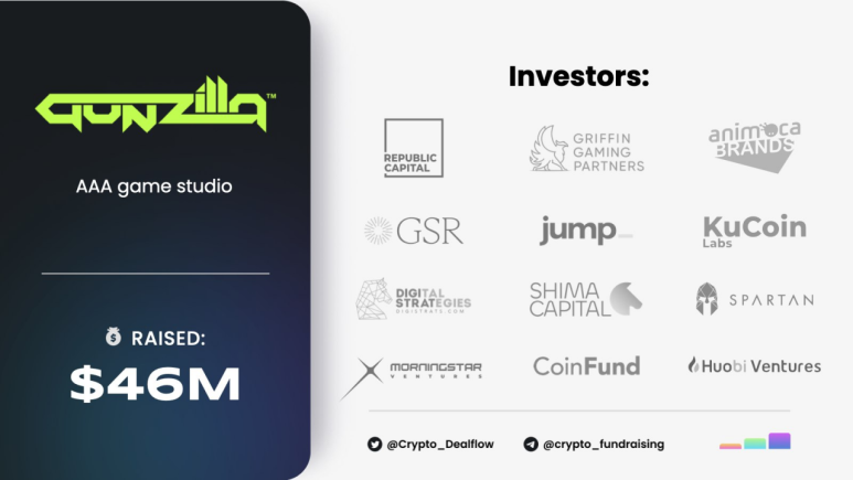โGunzilla Games์ ์ด๋ฒ ํ๋ฉ ๋ผ์ด๋์๋ Griffin Gaming Partners, Animoca Brands, Jump Crypto, RW3 Ventures, CoinFund, Shima Capital, Dominanace Ventures, GSR, Kucoin Labs, Spartan Investment Group, AlphaCrypto Capital, Blizzard, Digital Strategies, Morningstar Ventures, Gamegroove Capital, formless Capital, NGG, Huobi Group์ด ์ฐธ์ฌํ์ต๋๋ค.