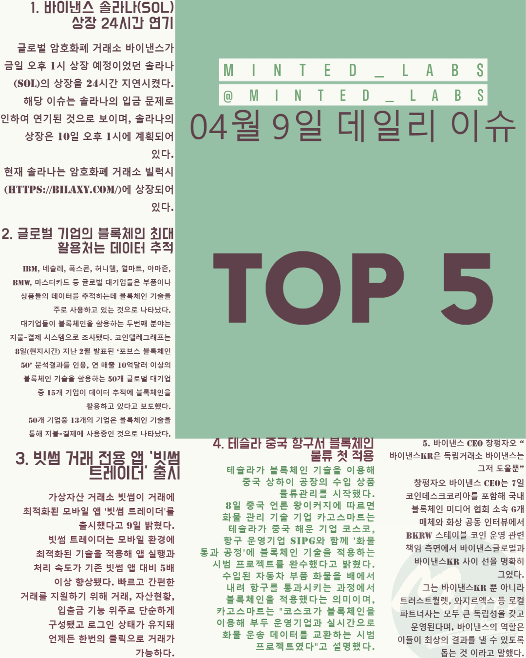 해당 이슈는 솔라나의 입금 문제로 인하여 연기된 것으로 보이며, 솔라나의 상장은 10일 오후 1시에 계획되어 있다.