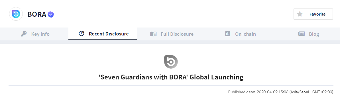 Title: Special disclosure ('Seven Guardians with BORA' Global Launching), Publish Date: 2020-04-09 06:06 UTC
