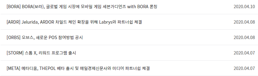 또한 보라(BORA) 프로젝트 관련 공시는 4월 10일 오전 11시:48분에 업비트 공시를 통해 발표되었습니다.