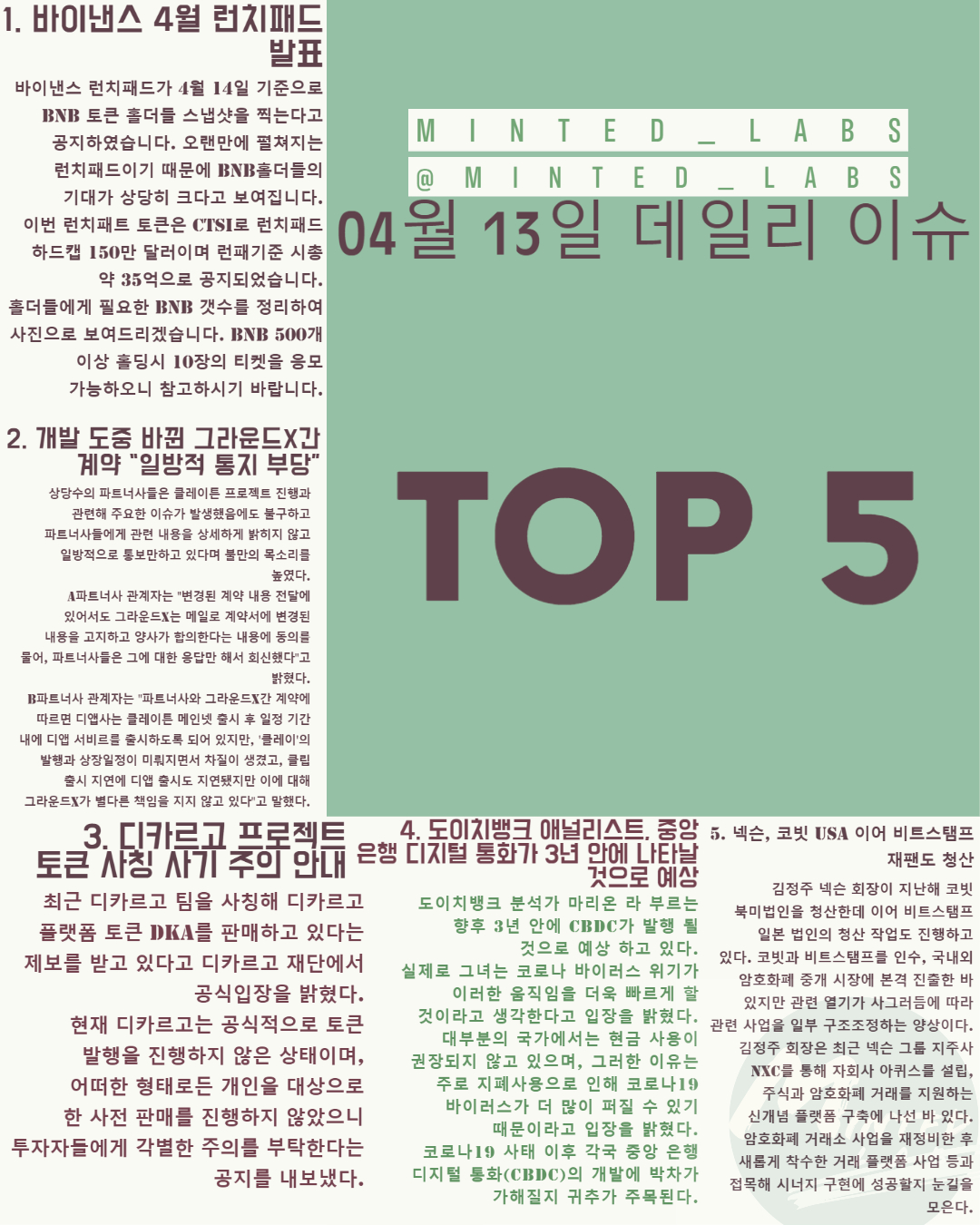 보다 빠른 정보는 민티드 텔레그램 채널과 카카오톡방을 활용해 주세요^^