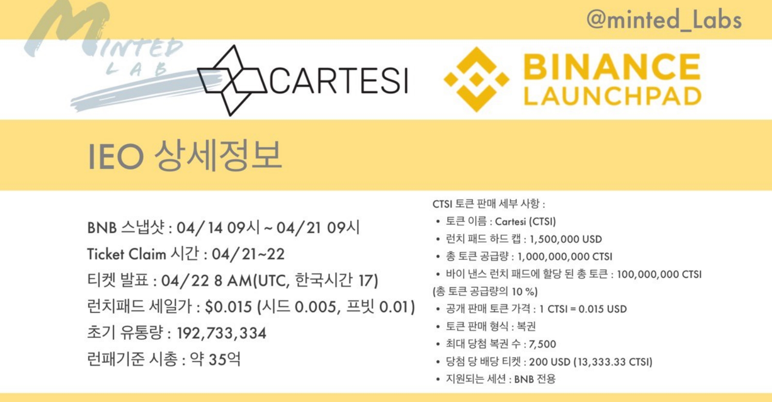 이번 런치패트 토큰은 CTSI로 런치패드 하드캡 150만 달러이며 런패기준 시총 약 35억으로 공지되었습니다.