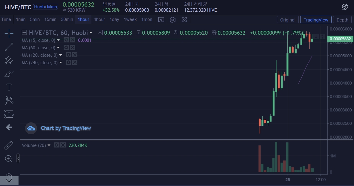 스팀의 스냅샷으로 지급된 HIVE가 글로벌 암호화폐 거래소 후오비 글로벌에 24일 오후 3시 상장했다. 후오비 글로벌에서는 오랜만에 이루어진 상장이었기 때문에 많은 투자자들이 일명 보따리를 시도했지만 상장 초반 급격한 하락으로 인해 많은 투자자들이 손실을 보았다. 하지만 밤사이 크게 올라 24일 저점 대비 25일 현재 약 2.5배의 상승을 기록하고 있다.