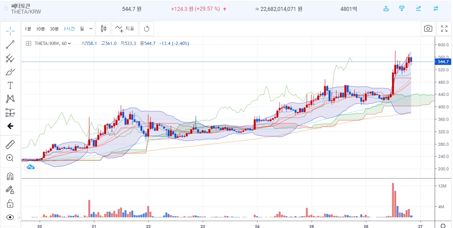 이미 메인넷 이슈로 큰 상승을 보여준 세타토큰이 금일 한번 더 상승세를 보여주었다. 쎄타토큰의 메인넷 하드포크를 위한 입출금 중지 공지를 업비트에서 내보낸 뒤의 일이다.