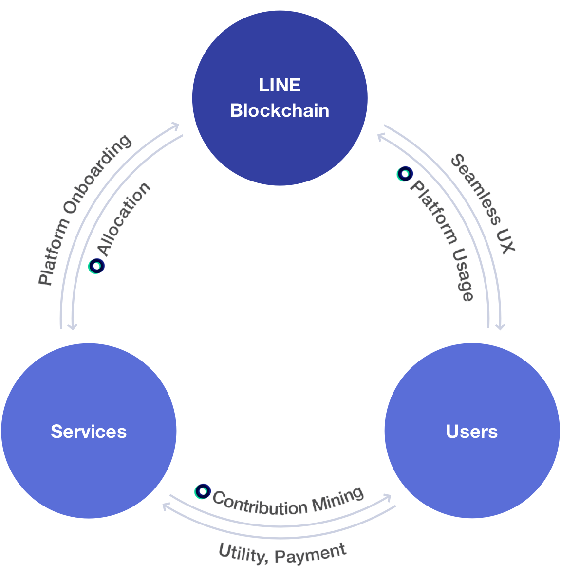 다양한 방법으로 생태계에 기여하여 링크를 얻고 이를 통해 얻은 링크는 암호화폐 거래소 내에서 수수료로 사용 또는 라인 블록체인 플랫폼 에서의 사용료로 지불또한 가능합니다.