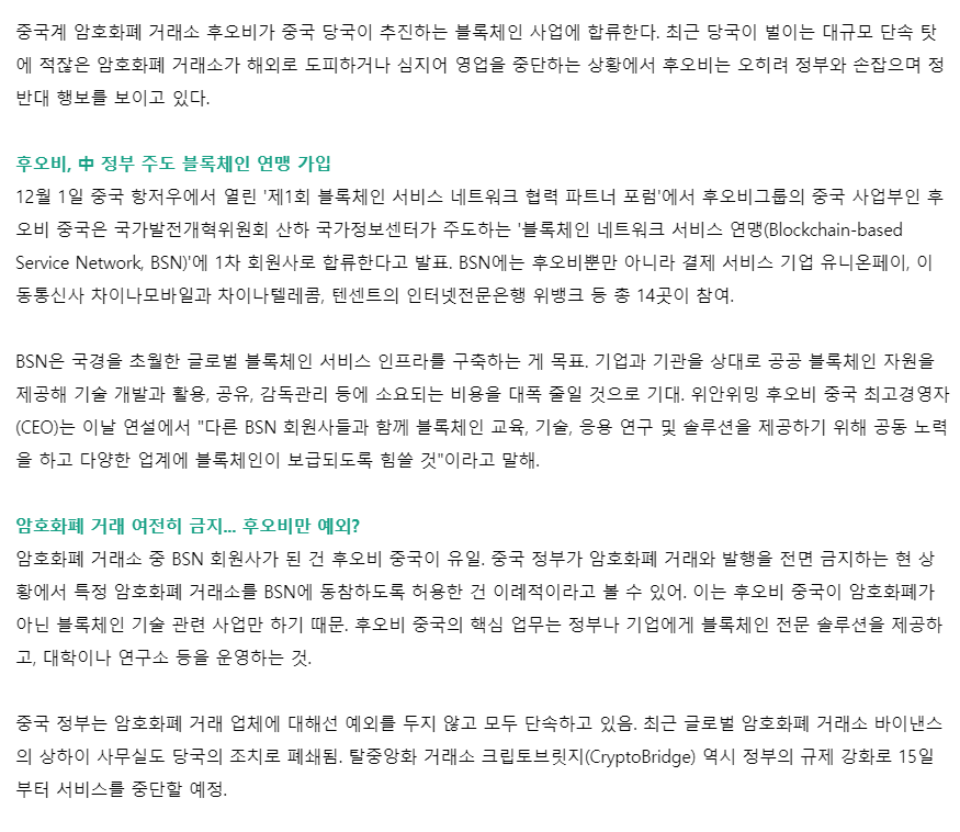 1. 후오비 중국 중국 정부 주도 블록체인 연맹 합류