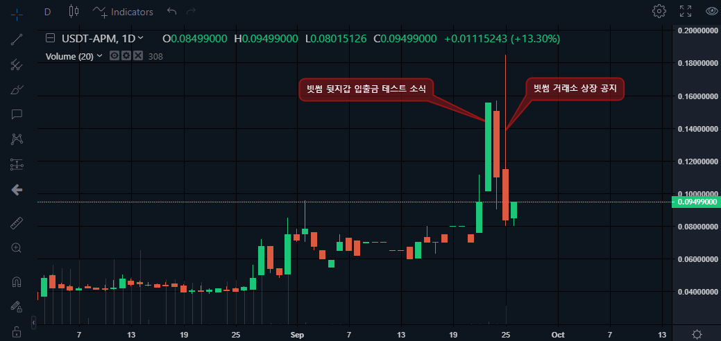 빗썸 거래소에 상장된 코인들은 상장 후 지속적인 하락 모습을 보이다가 바닥을 다진 뒤 꾸준히 상승하는 차트를 보이는 코인이 굉장히 많기 때문에 앞으로 apM의 가격이 어떻게 될지 지켜보는 것도 재미있는 관전 포인트가 될 것 같네요.