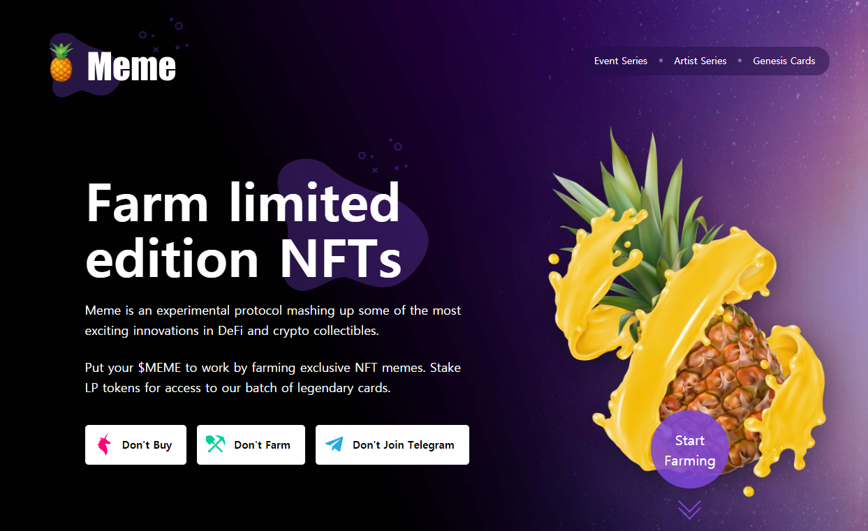 Defi 와 NFT 가 섞인 프로젝트로 이름 그대로 Internet Meme 의 인터넷과 SNS 에서 사이에서 유행하는 인기있는 콘텐츠를 활용한 토큰입니다. 이러한 수많은 밈 을 토큰화 하였으며 재밌고 희귀한 밈을 교환 판매 하는것이 가능합니다.