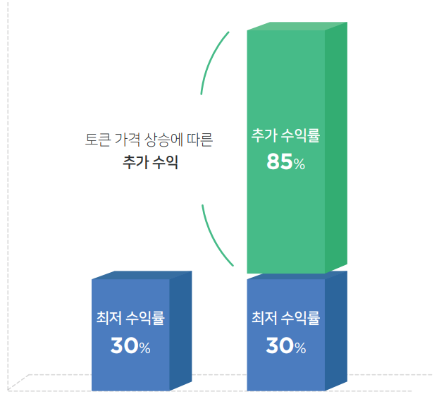 최소 스테이킹 금액인 1,000만 원을 투자했을 시 100일 후 1,300만 원이 되기 때문에 100일로 나눠서 코인마켓캡 기준 시가로 매일 13만 원에 해당하는 금액의 코인을 보상으로 지급받습니다.