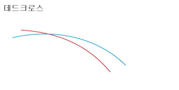 이는 단기 이평선이 장기 이평선을 뚫고 꽂는 그림으로 하락장세 전환 신호입니다.