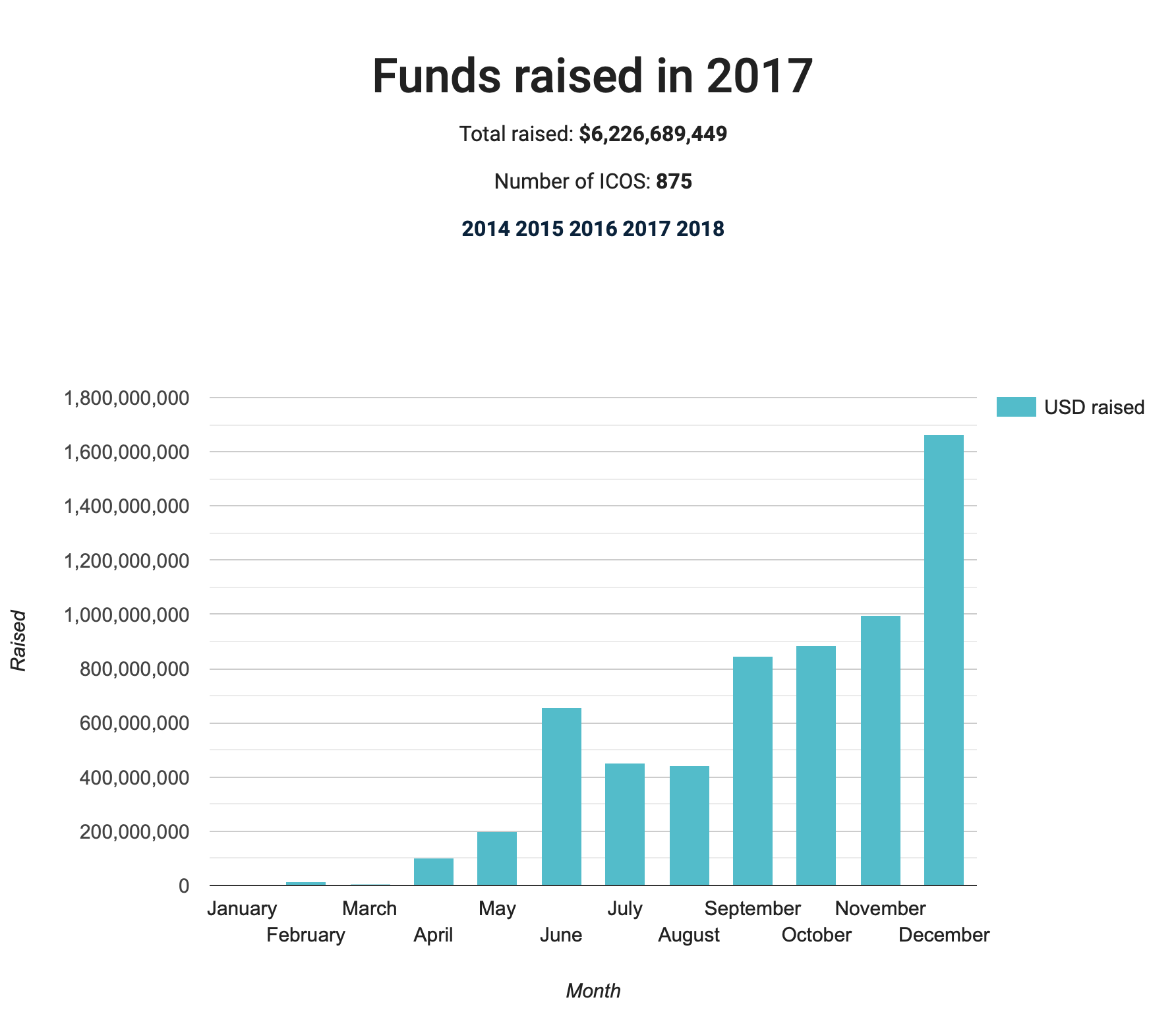 2017년도에 모금된 ICO 모금액입니다. 숫자만 봐도 어마어마하죠?