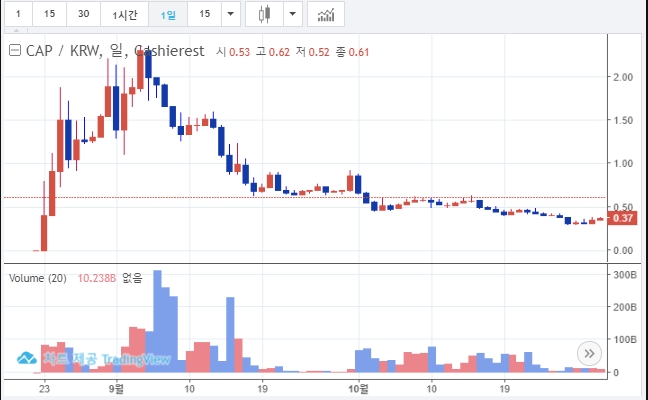 캡 역시 0.1원 채굴가에서 2원까지 약 20배의 상승을 단기간에 보여주었습니다. 저도 채굴하여 1.5원쯤 팔았던 기억이 있네요.