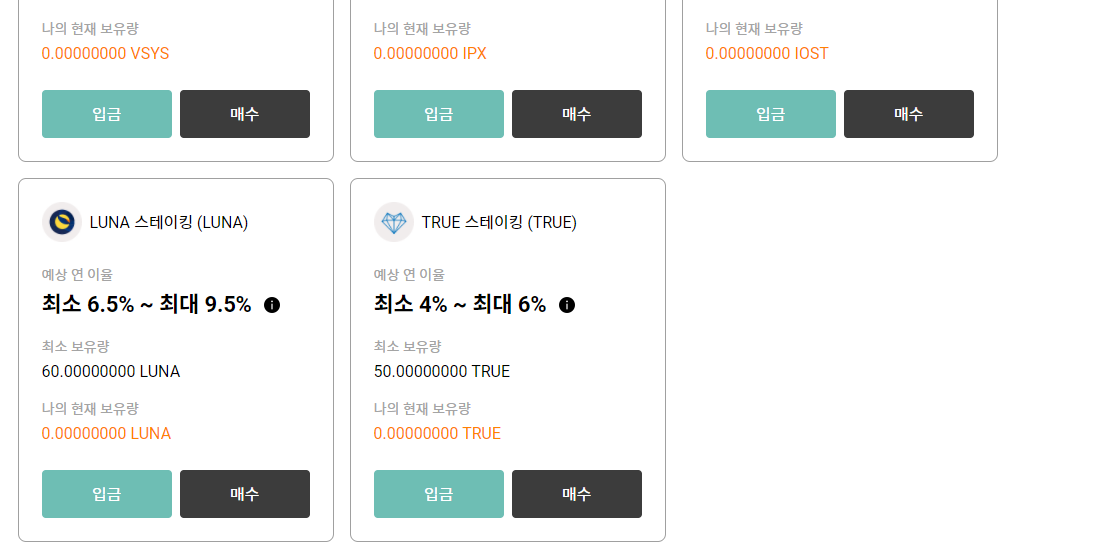 스테이 킹 서비스는 테라스테이션 이외에도 빗썸 등과 같은 여러 거래소에서 스테이킹 서비스를 제공 중입니다.