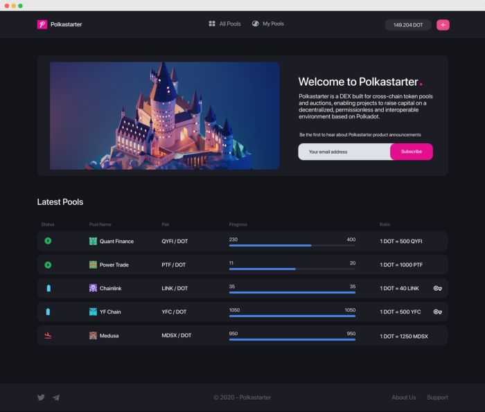 Polkastarter의 최종 버전은 Polkadot 기반 토큰 풀을 활성화하여 프로젝트가 분산되고 상호 운용 가능한 환경에서 자본을 조달할 수 있도록 합니다.