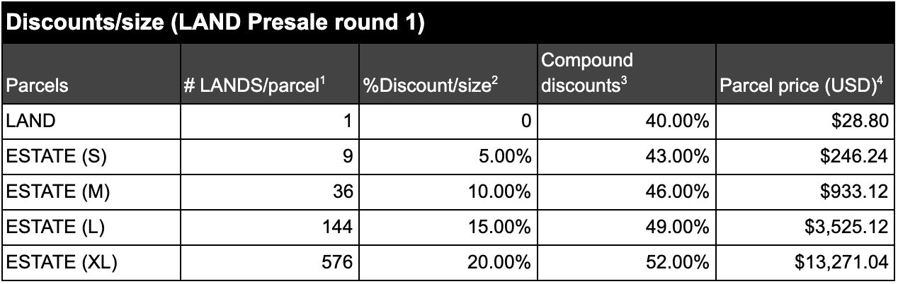 · 16,704 LAND(10%)는 더 샌드박스 소유로 남아 특별 이벤트 혹은 게임 호스팅에 사용될 것입니다.