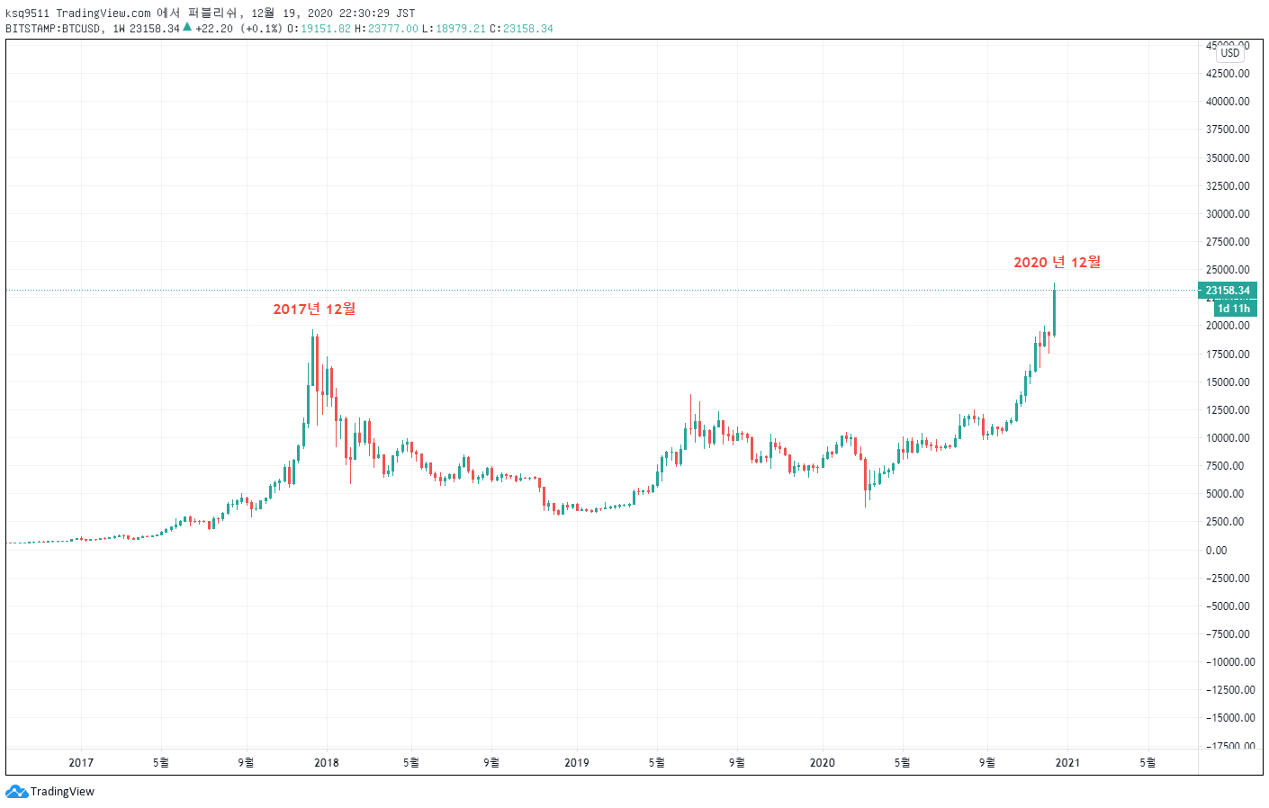 이때 당시만 해도 비트코인은 지금과 비교하면 상당히 낮은 가격대에 머물러 있었는데 요번달에 어느세 전고점을 돌파하여 비트코인은 신고점을 갱신중입니다.