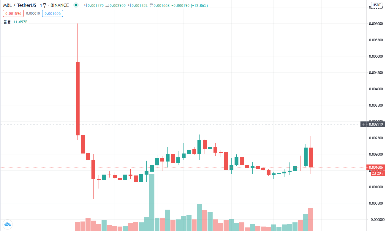무비블록 프로젝트의 토큰인 무비블록(MBL) 가격 흐름