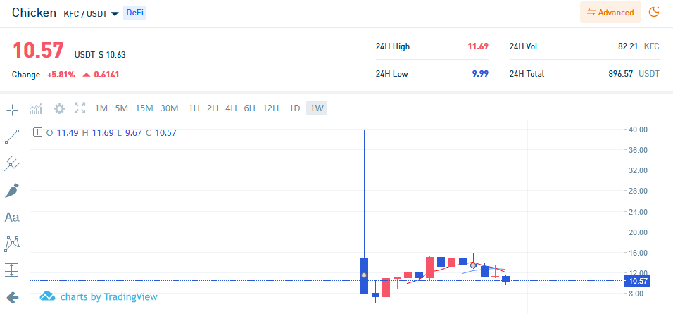 무비블록 프로젝트에서 DeFi 코인으로 출시한 치킨파이낸스(KFC) 가격 흐름