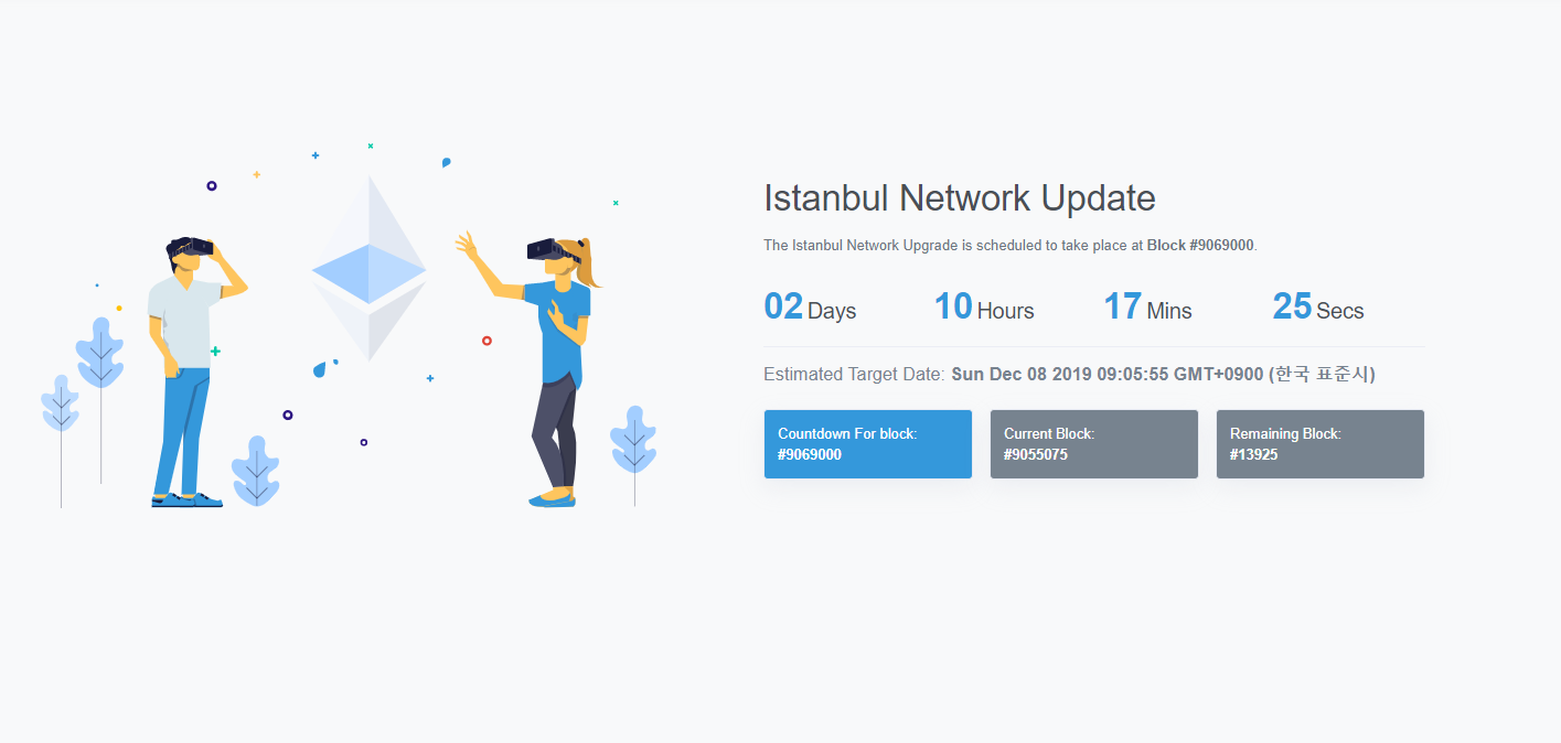 이더리움 이스탄불 업그레이드가 한국 시간으로 약 2일 정도 남았습니다. 블록 높이는 #9069000이며
