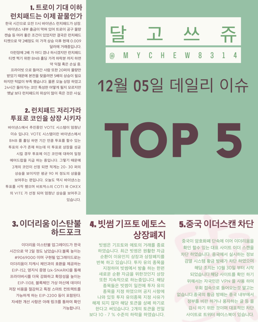 [데일리 이슈] 말도많고 탈도많은 빗썸, 바이낸스 런치패드 (0) | 2019.12.05 |