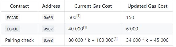 1) *EIP-152(前 EIP-2024) : BLAKE2b라는 새로운 암호화 해싱 알고리즘을 구현하는 사전컴파일 컨트렉트를 *EVM에 도입.