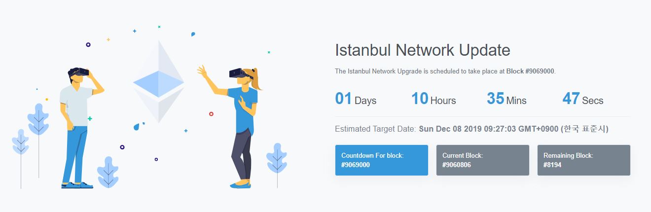 - 한국시간으로 12월 8일 새벽에 이더리움 메인넷 이스탄불 하드포크가 예정되어 있습니다