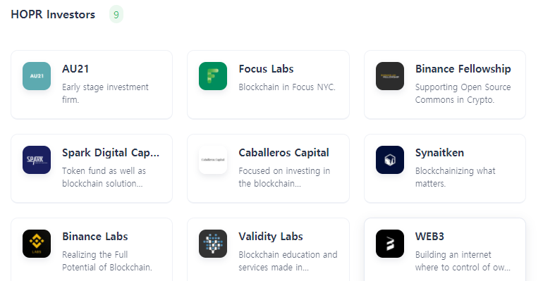 HOPR 프로젝트에 많은 투자자들이 관심을 갖는 이유는 바로 투자사입니다.