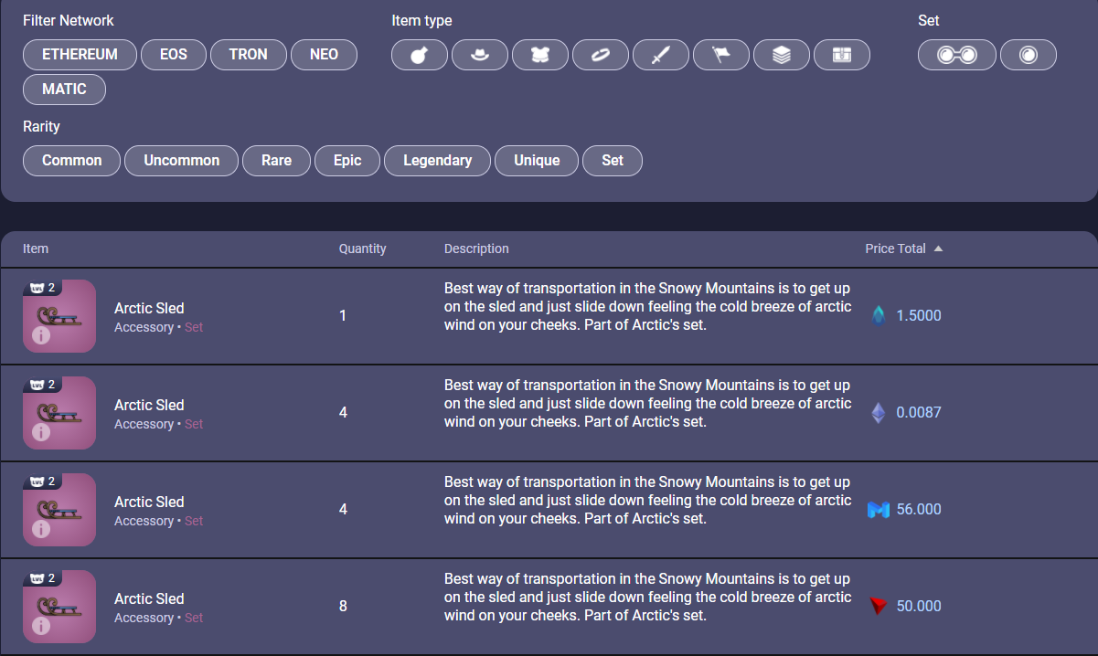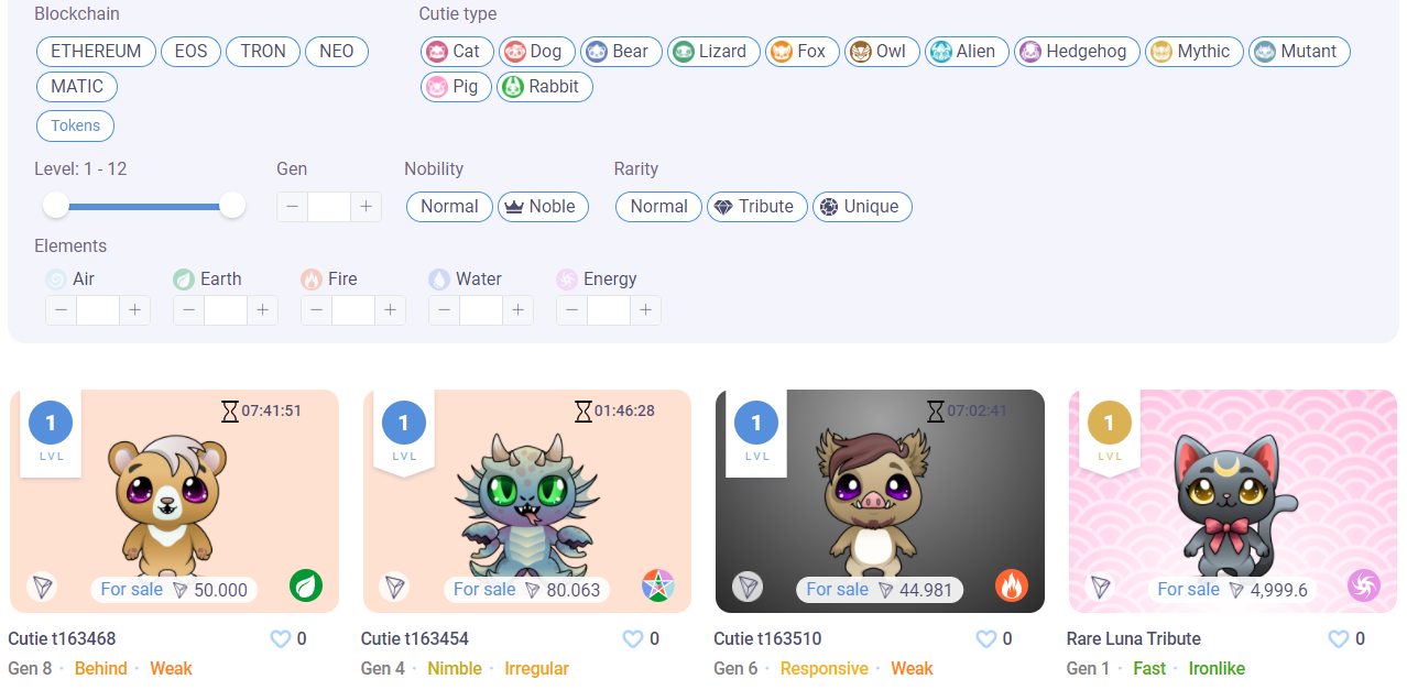 위 사진과 같이 홈페이지의 Marketplace를 통해 Cutie와 Item을 거래할 수 있습니다.