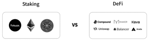 사용자들은 이때 보상의 문제에 관련해서 DeFi를 선택할 것인지, 스테이킹을 선택할 것인지에 대한 문제에 직면하게 됩니다.