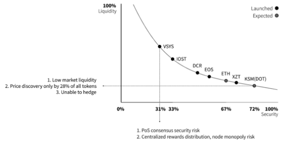 PoS에서 컨센서스 보안과 유동성의 균형 관계입니다.